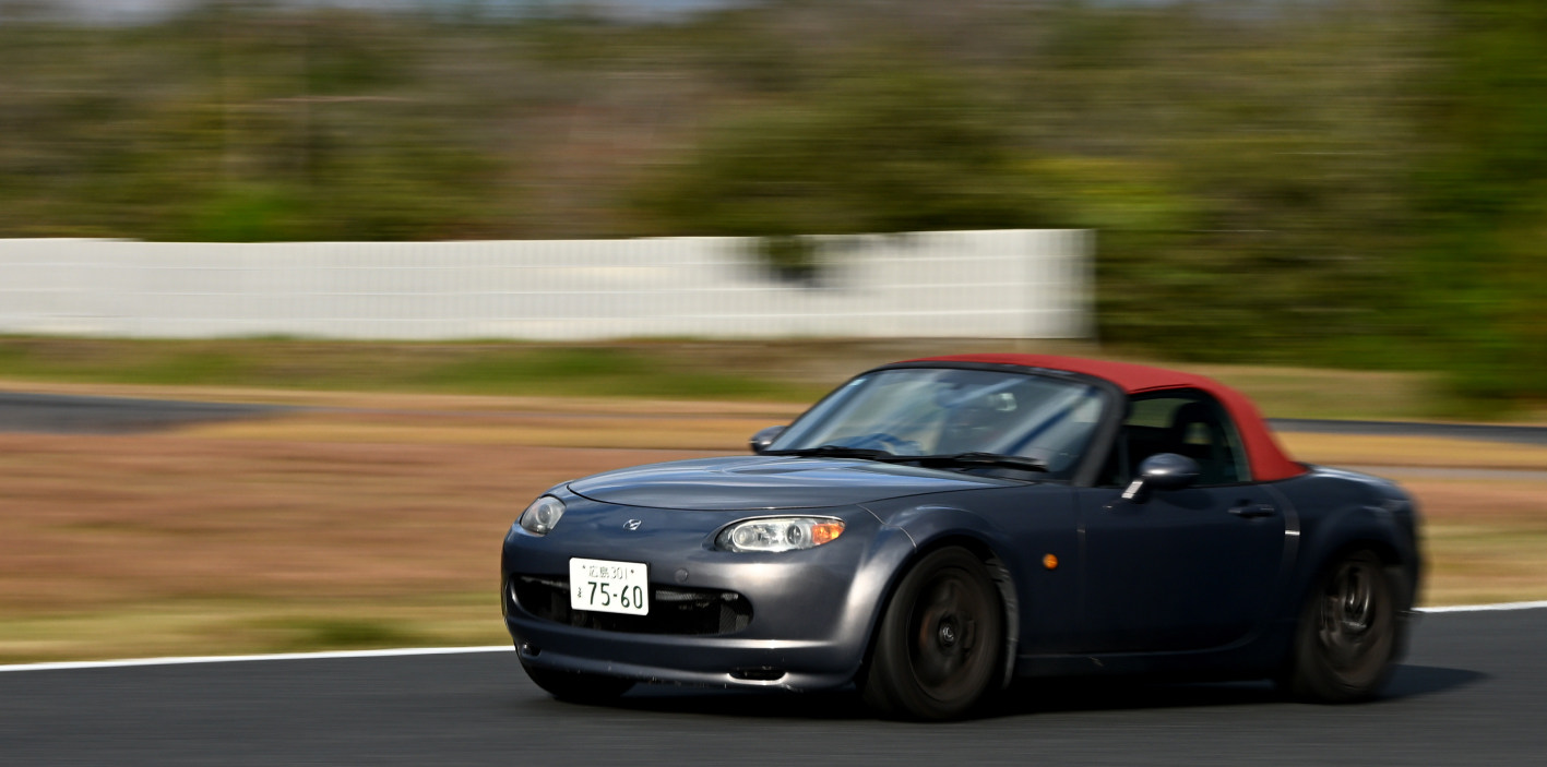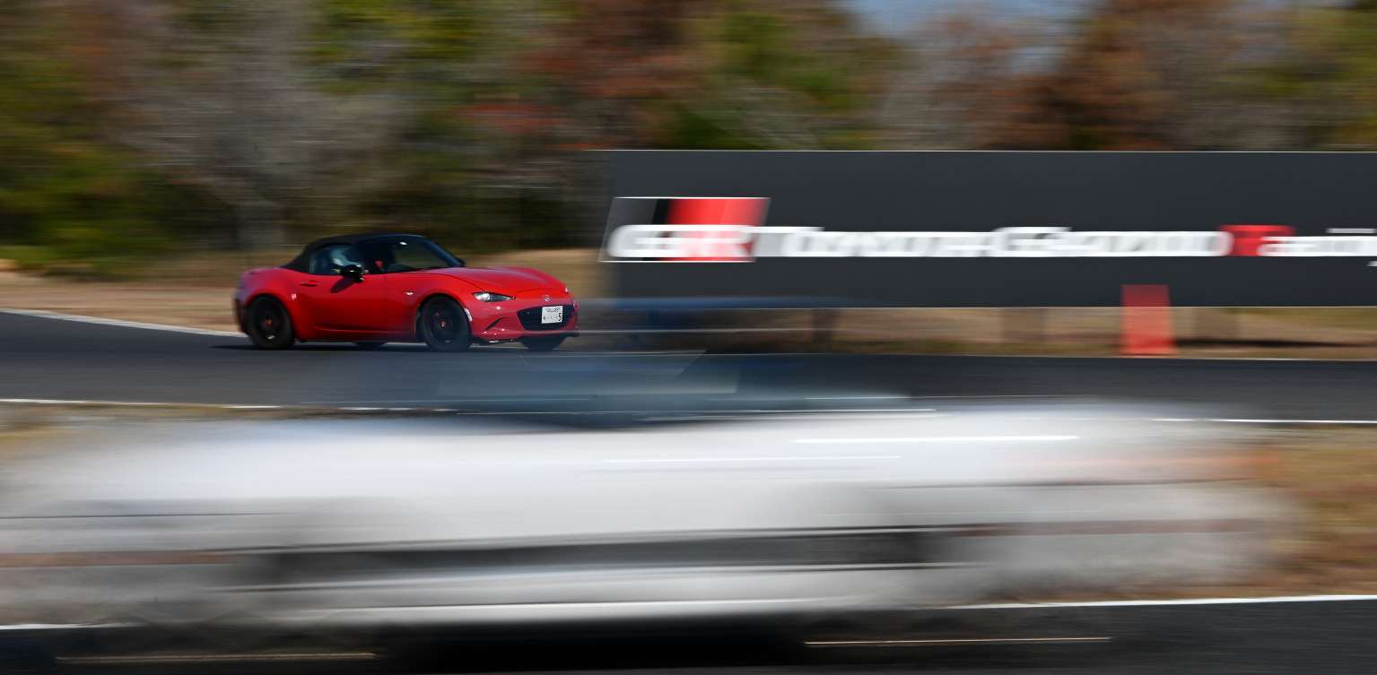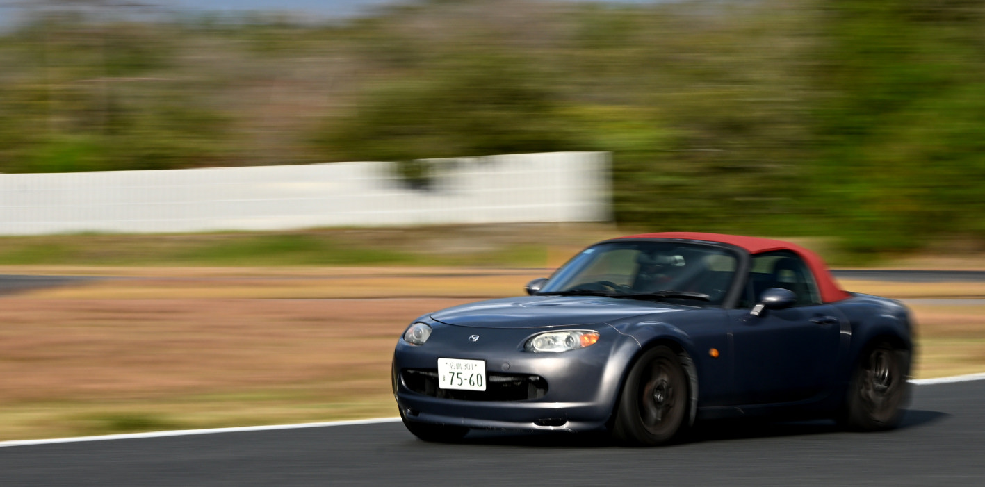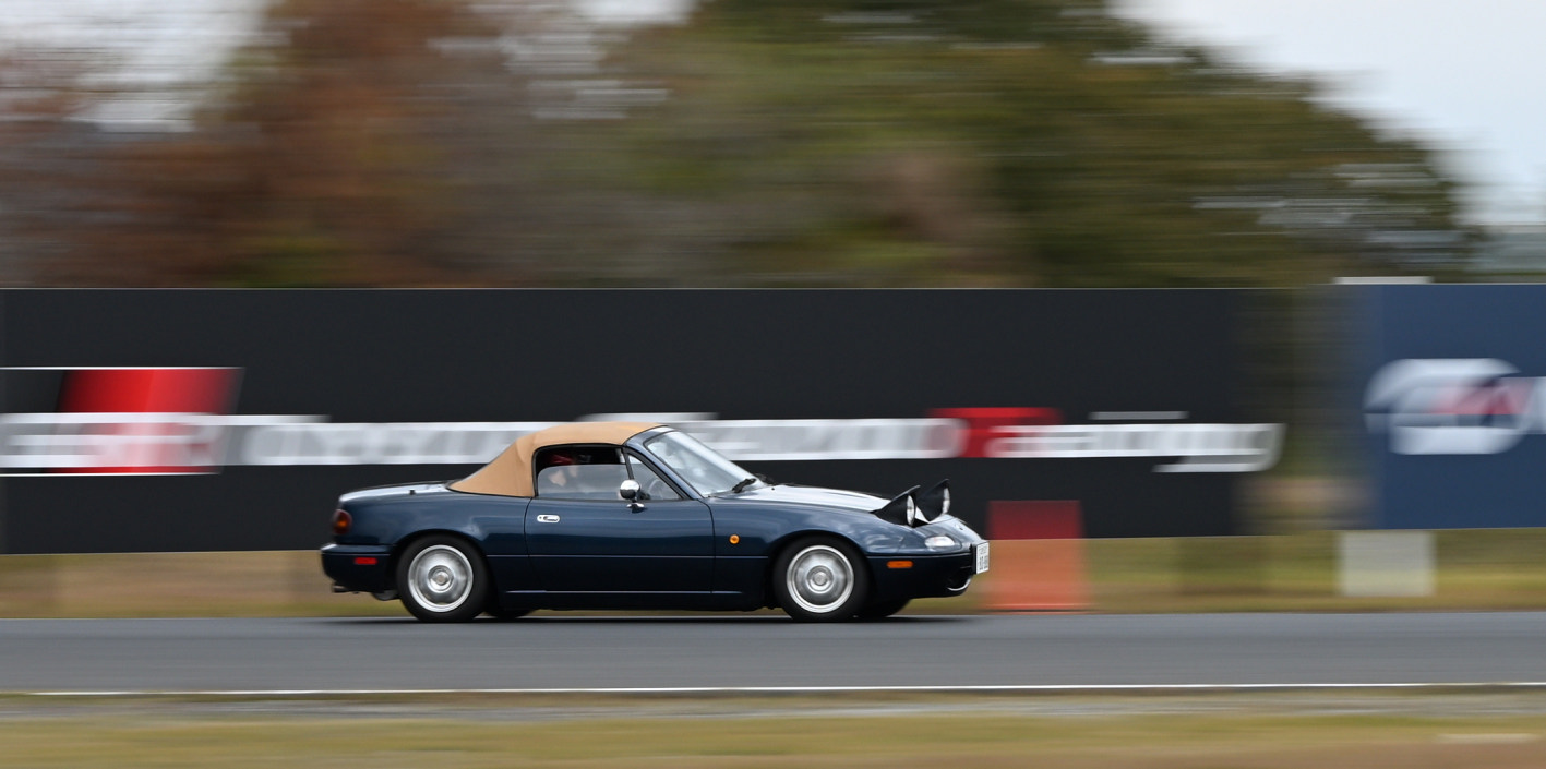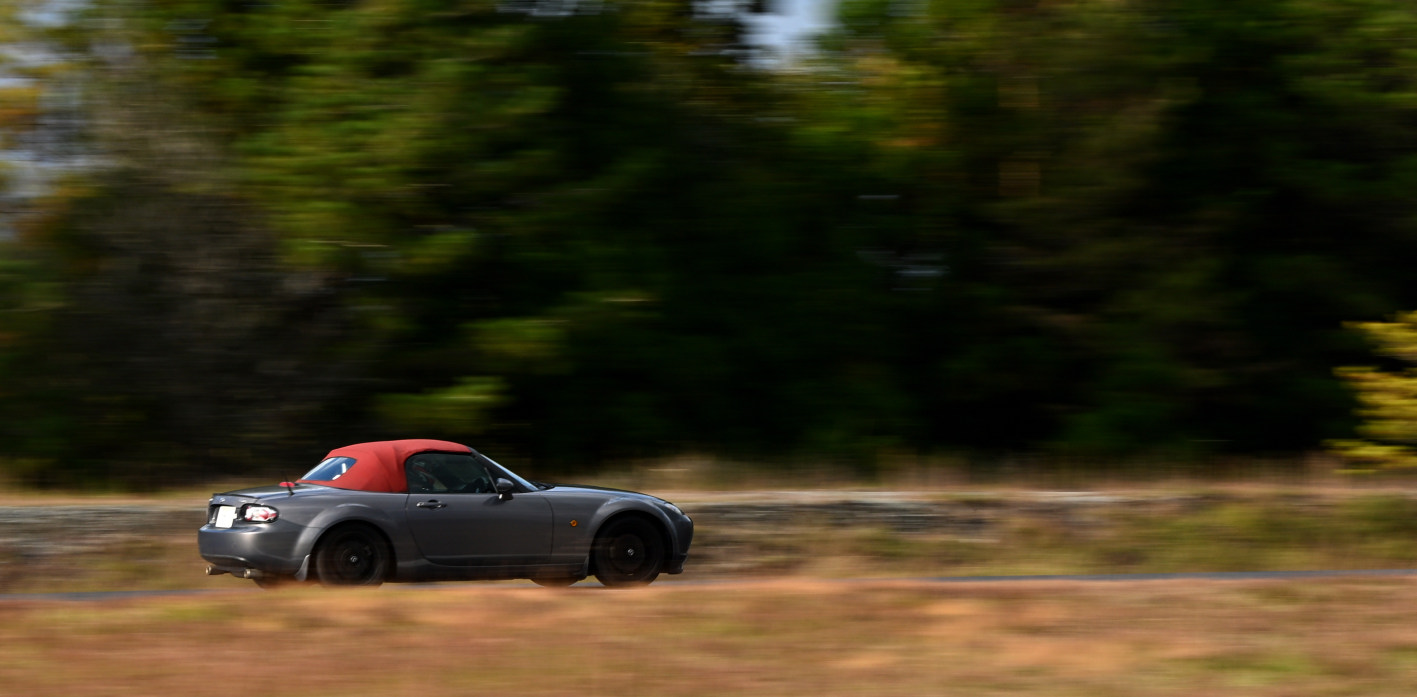 1/30秒です。偶然手前のコースを通り過ぎたクルマがありました。 流し撮りならではの面白さかなと。
