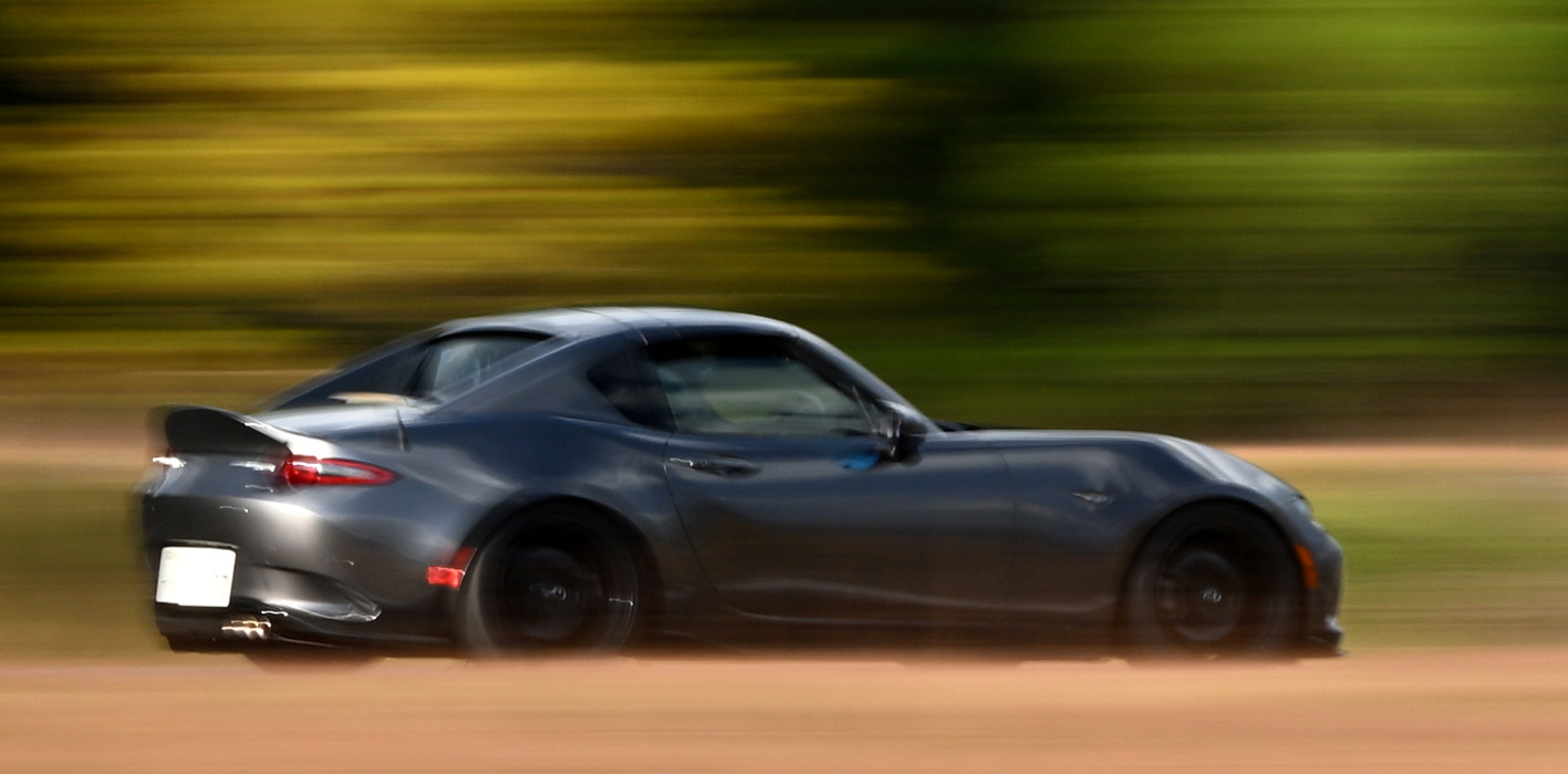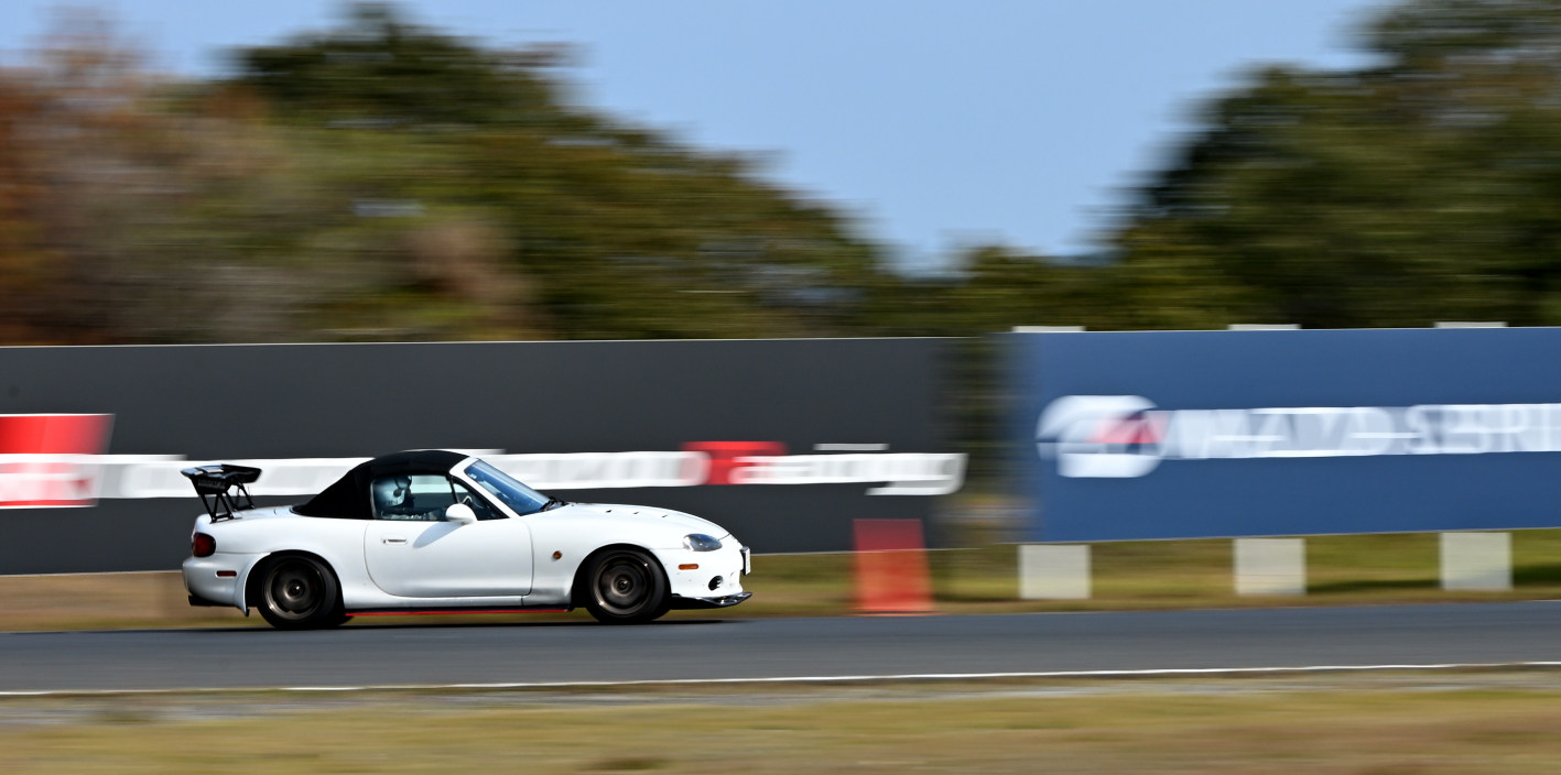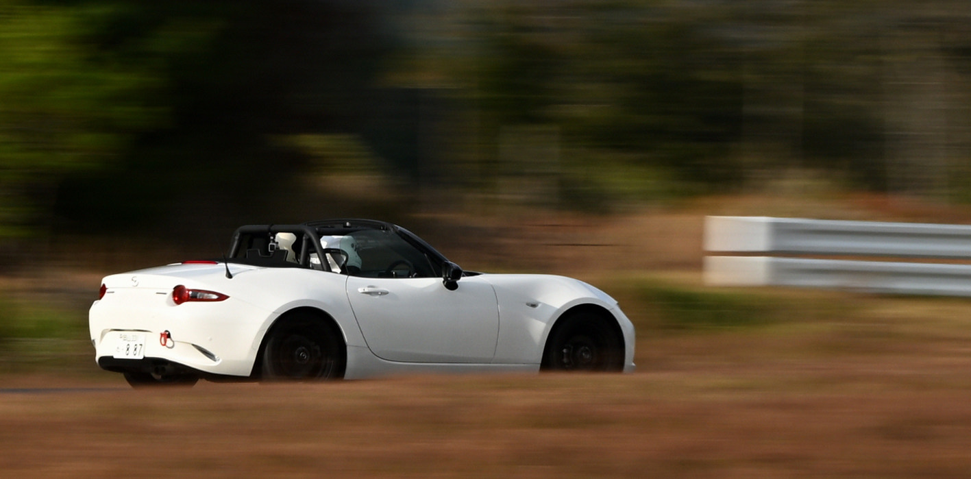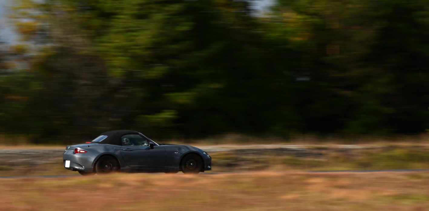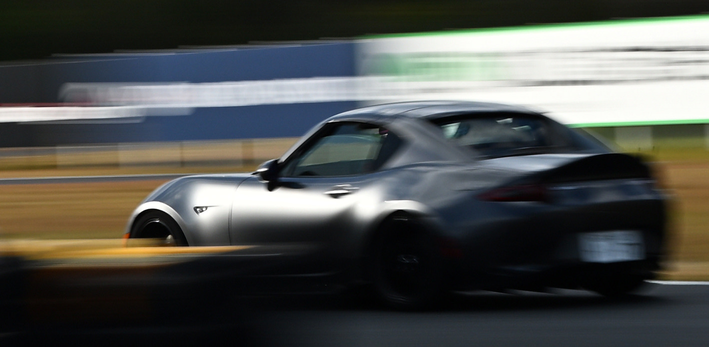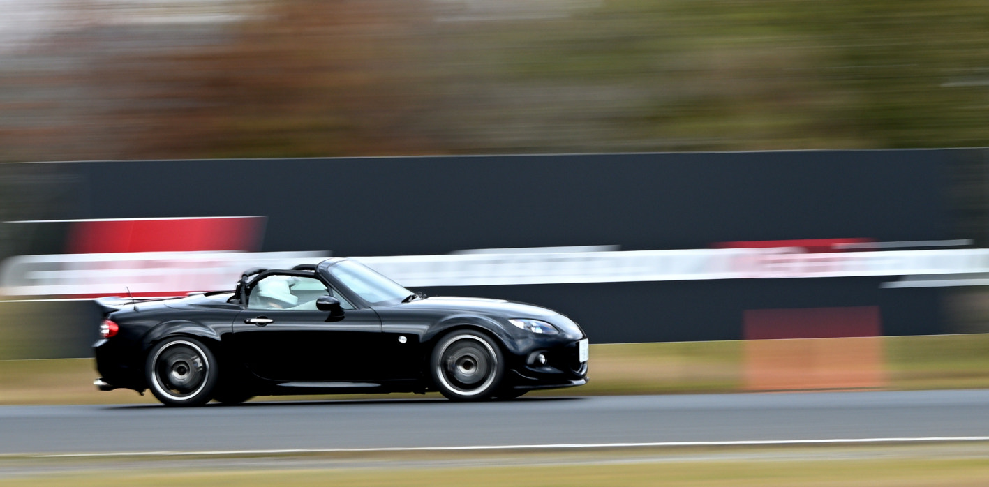 1/30秒です。偶然手前のコースを通り過ぎたクルマがありました。 流し撮りならではの面白さかなと。
