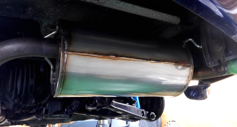 この改造品は隔壁を加工して「抜け」を良くしています。その結果、アイドリングはノーマルのまま、3千回転くらいのコモリ音も消え巡航時は物凄く静かです。そこから踏み込んでいくとレブリミットまでストレスなく吹け上がります。